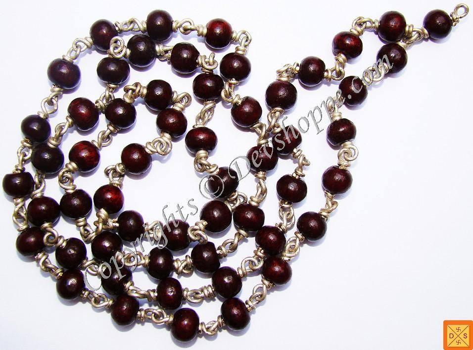 Red Sandalwood  ( Lal Chandan) mala in White metal 54 +1 beads - Devshoppe