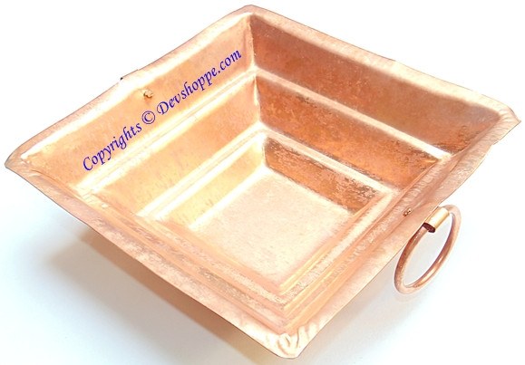 This is a small havan kund made up of copper.Such items are very useful during poojas and yagnas amongst Hindus wherein the pandit is required to light fire. Such pieces are very important for poojas as they are used for lighting fire and fire is the main auspicious divine presence in those prayers.