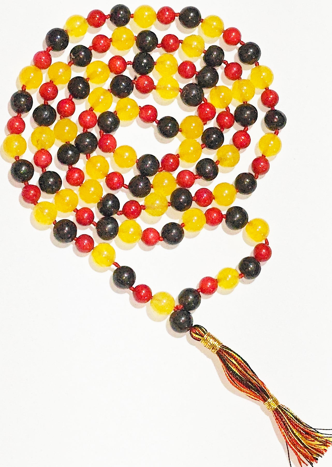 This Premium quality Hakik combination mala has been made from using Black Hakik , Red Hakik and Yellow Hakik beads . The powerful combination mala can be used for wearing as well as in meditation. Hakik is a powerful stone when it comes to protection from evil eye, negative people or situations and tantra attacks.