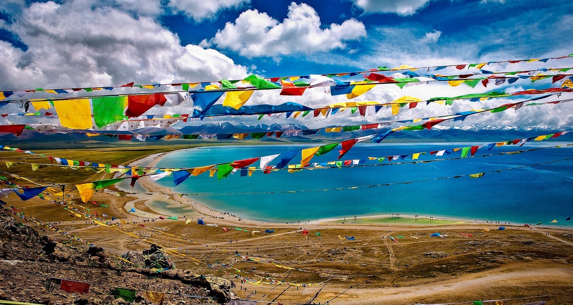 Buddhist belief is strong in the power of these sacred flags. The colours of a prayer flag and the symbols printed on it create a prayer or an offering that the wind distributes to the world each time it brushes against the flag. Just as life moves on and is replaced by new life, Tibetans renew their hopes for the world by continually mounting new flags along side the old.