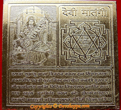 Goddess Matangi yantra is prescribed to acquire supernatural powers, especially gaining control over enemies, attracting people to oneself, acquiring mastery over the arts and gaining supreme knowledge.