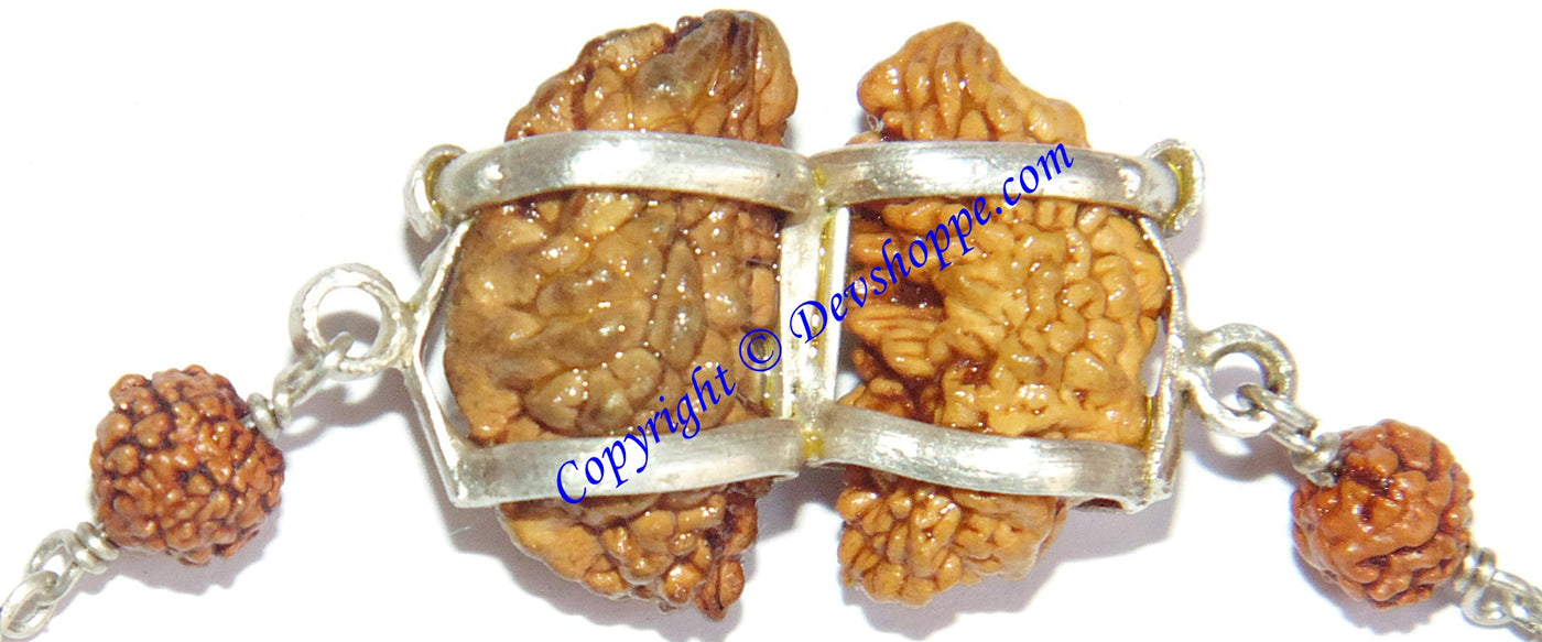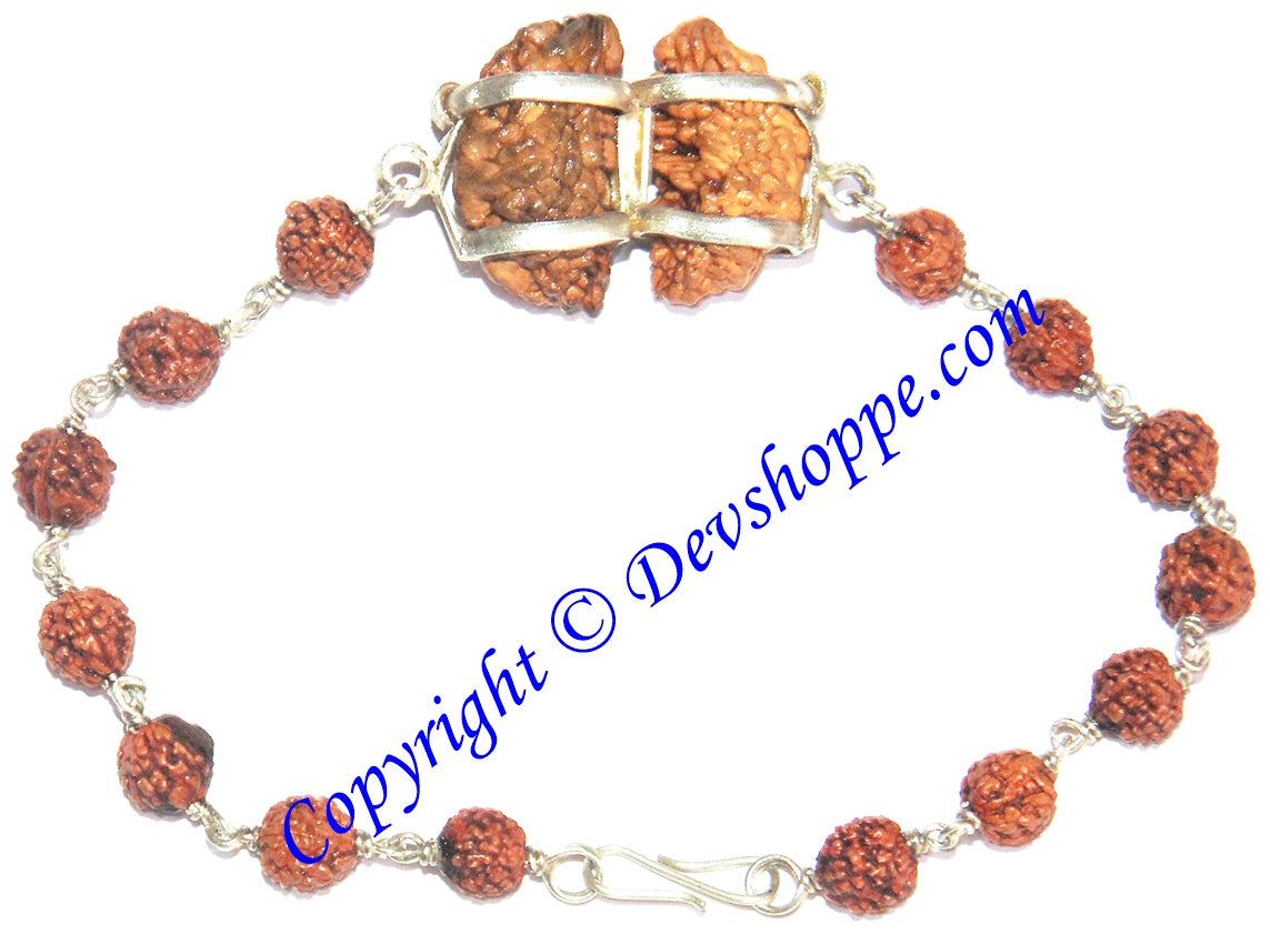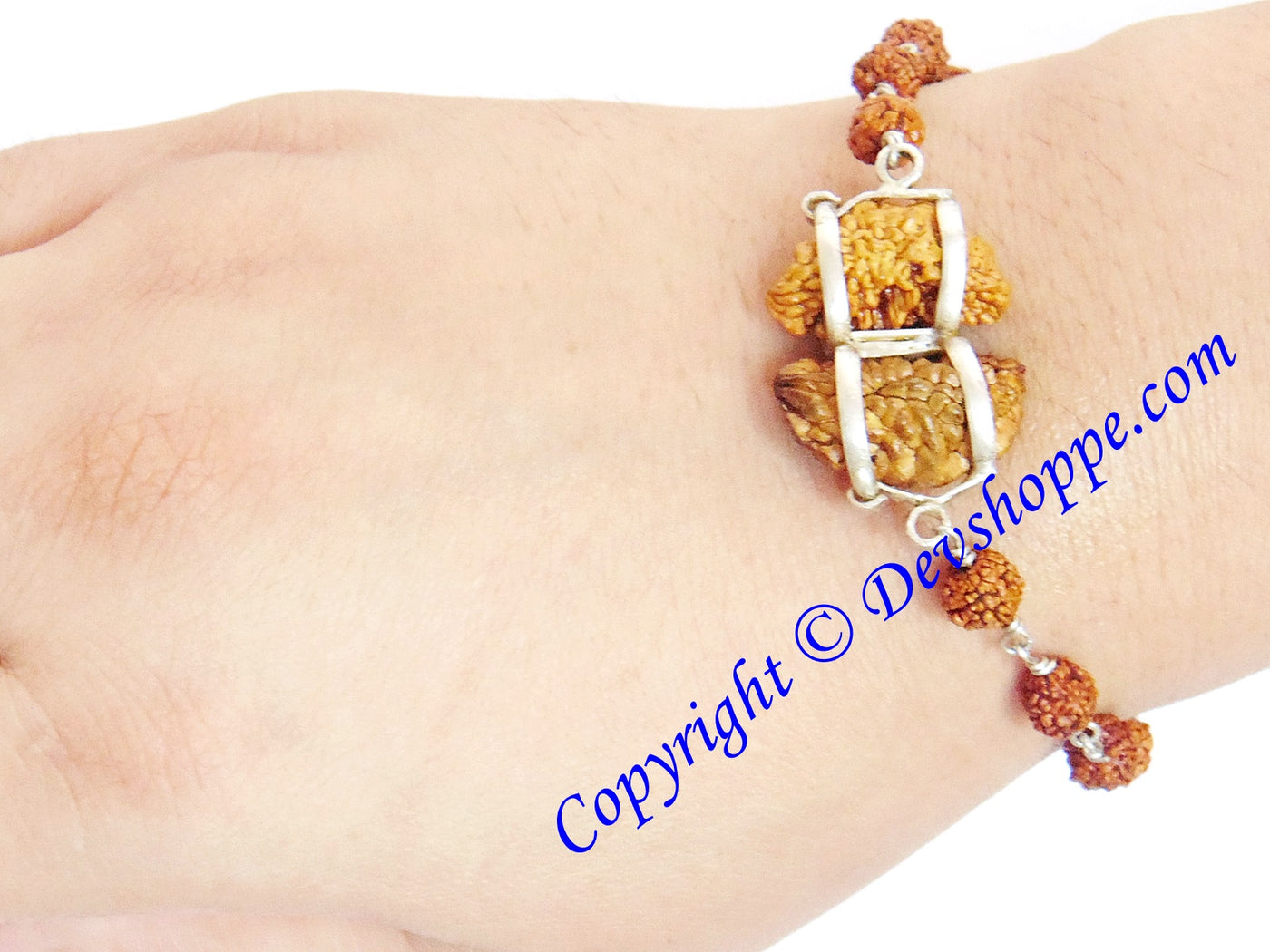 Premium quality One faced Rudraksha twin beads bracelet in silver wire