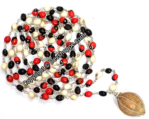 Red, Black and white Chirmi mala beads in silver with Laghu Nariyal