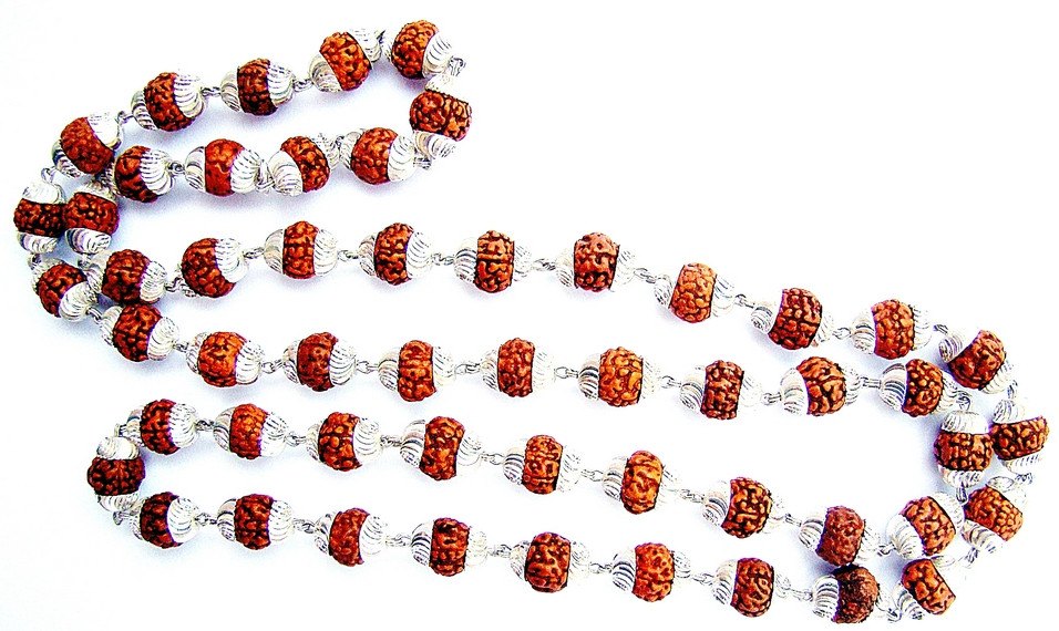 Rudraksha 8 mm mala in pure silver 55 beads - Devshoppe