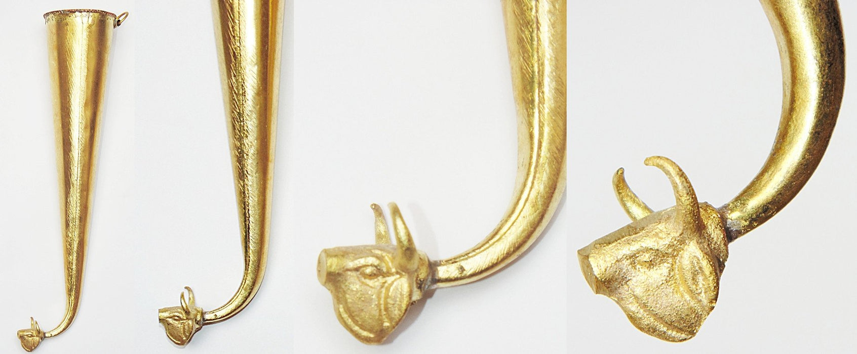Known as a Gaumukhi Shringi, this is a ritual vessel for pouring libations over a statue of a deity. The name Gaumukhi means "cow's mouth" and relates to the glacier in the Himalayas of the same name, the source of the river Ganges. It is sacred to do Abisekha to gods with Gaumukhi Shringi.