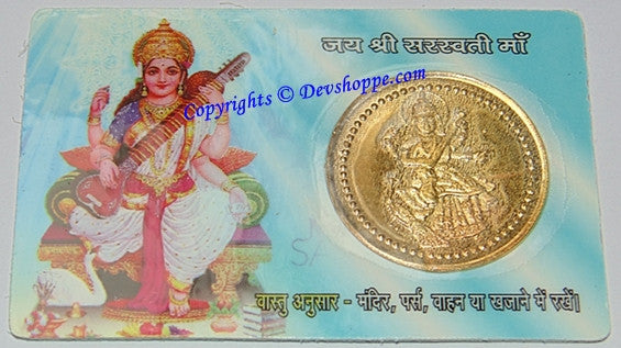 Sri Saraswati yantra laminated coin card - Devshoppe